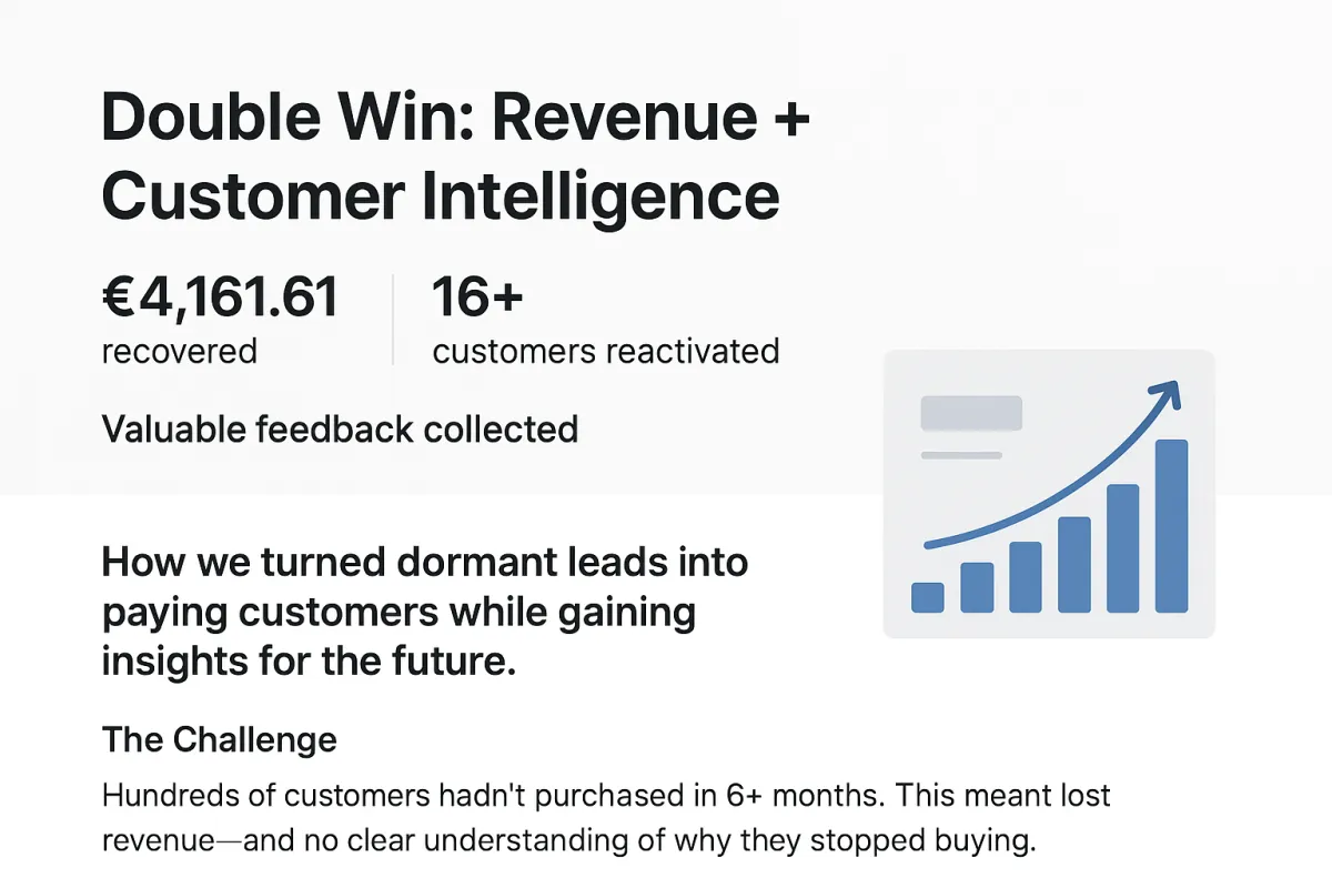 "Proven ROI: Revenue up, customers back. €4K+ recovered in one campaign."